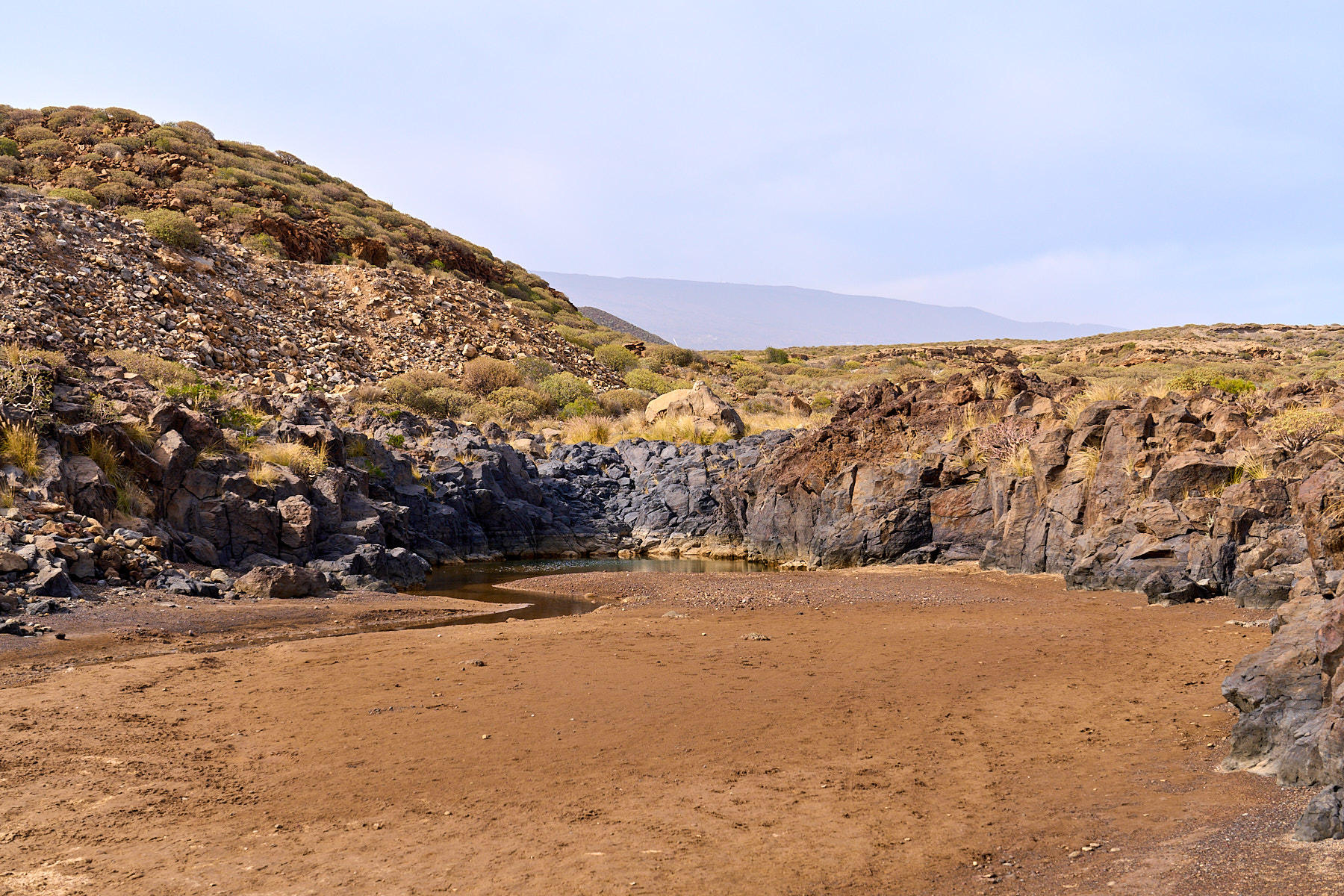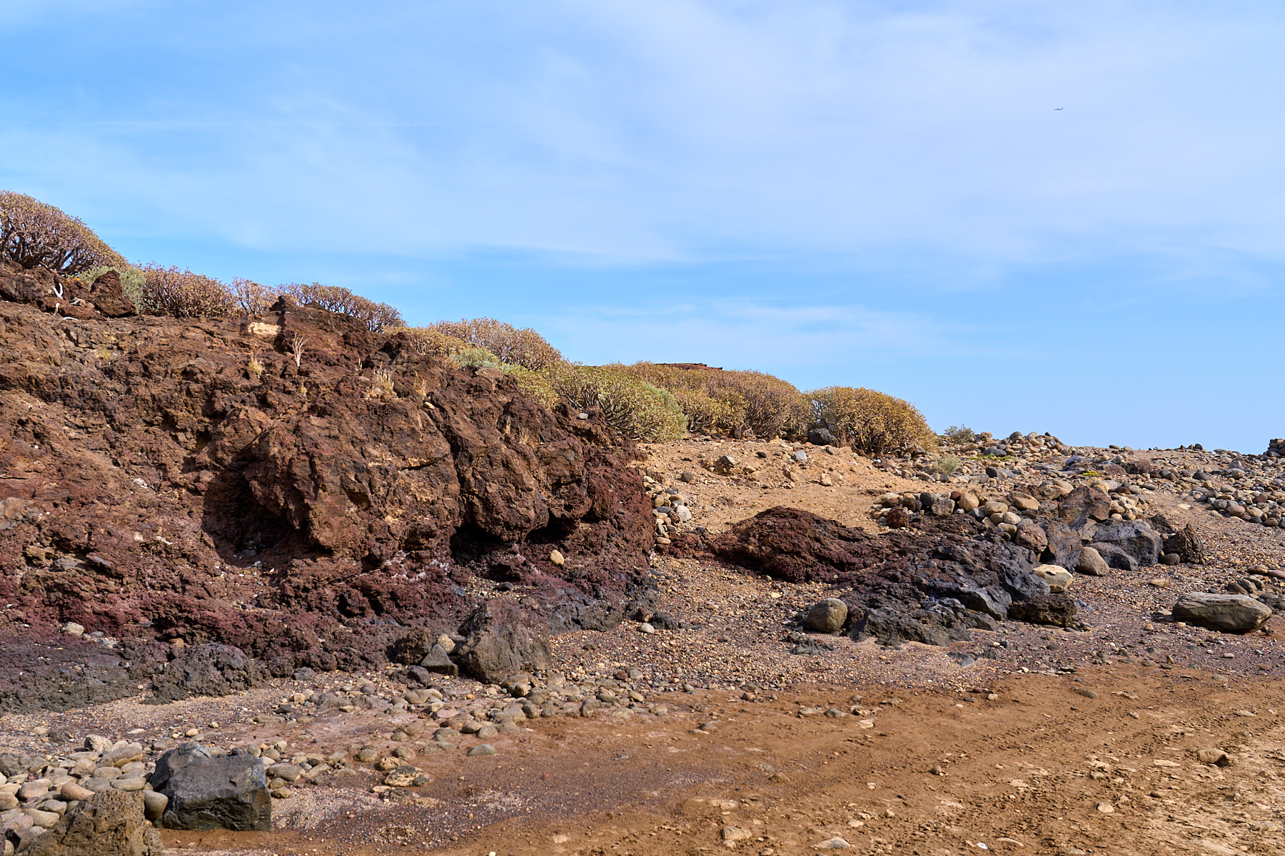 Nachmittags gehe ich der Küste entlang und mache einige Landschaftsaufnahmen von der durch vulkanische Aktivität geformten Landschaft. Der weg ist sehr steinig und der Untergrund wechseln zwischen unterschiedlichen Bimssteinen zu Basalt und wechselt häufig die Farbe. Kurz nach 17 Uhr bin ich wieder im Appartment und gehe kurz nach 18 Uhr nochmal zum Supermarkt um Suppenwürfel und Buchstaben-Nudeln zu kaufen, damit E. ein schonendes Abendessen haben kann. T. schläft die meiste Zeit und erholt sich .
