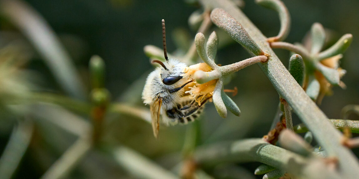 Da mein Aktionsradius heute eingeschränkt ist mache ich mittags an einer der Pflanzen vor unserer Terrasse ein paar Makro-Aufnahmen von ca. 7-8mm grossen Bienen.